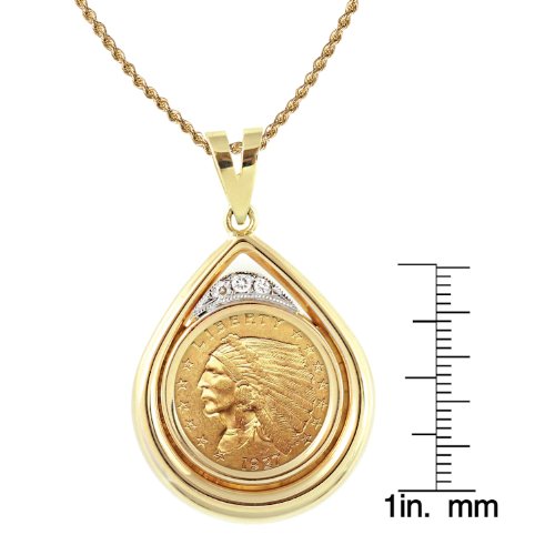 Get Your Discount And Low Prices On $2.50 Indian Head Gold Piece Quarter Eagle Coin in 14k Gold Teardrop Pendant w/Diamonds (24" - 14k Gold Rope Chain)