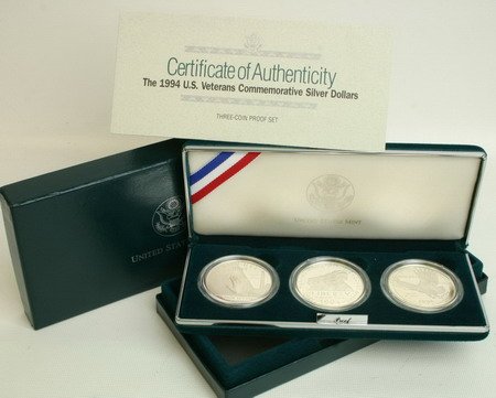 1994 US Mint 3 Silver Dollar Veterans War Proof Coins best price